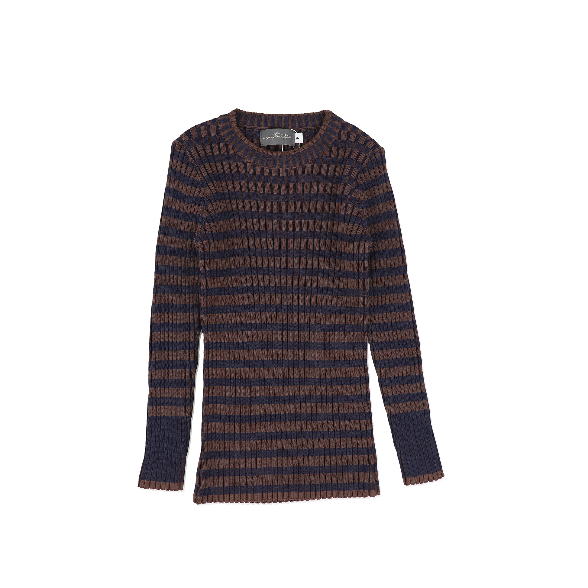 SWEET THREADS NAVY/BROWN BOX KNIT SWEATER