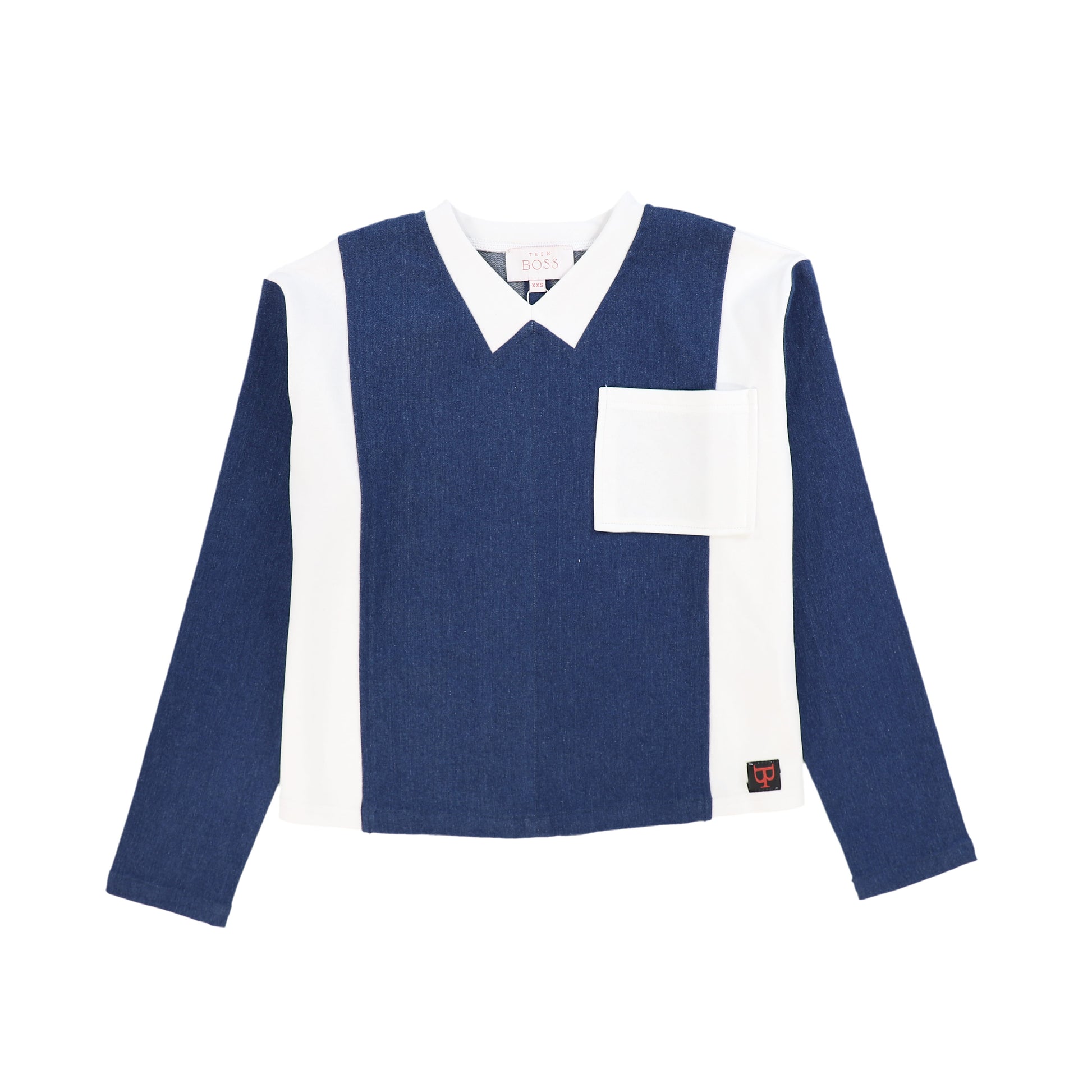 TEEN BOSS DENIM/WHITE POCKET TOP