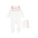 BEBE JOLEE WHITE/PINK PIPED BIB COLLAR FOOTIE [FINAL SALE]