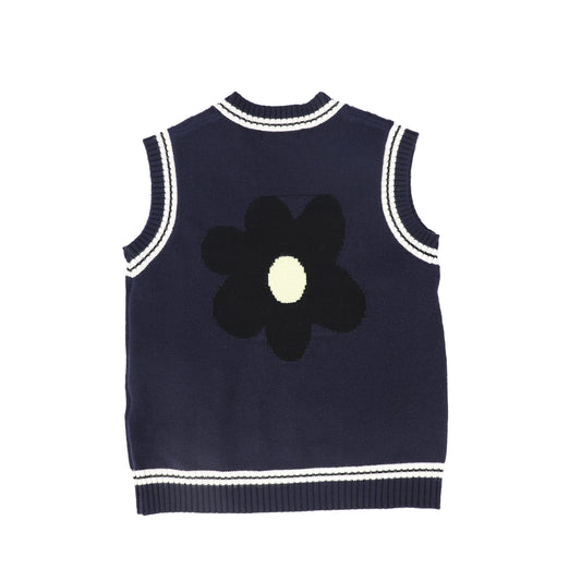 VALENTINA NAVY CABLE KNIT FLOWER VEST [FINAL SALE]