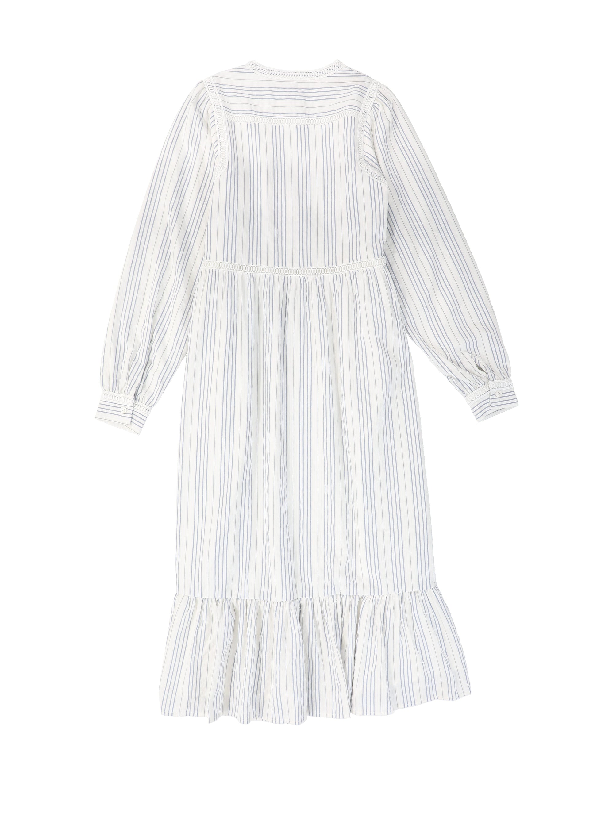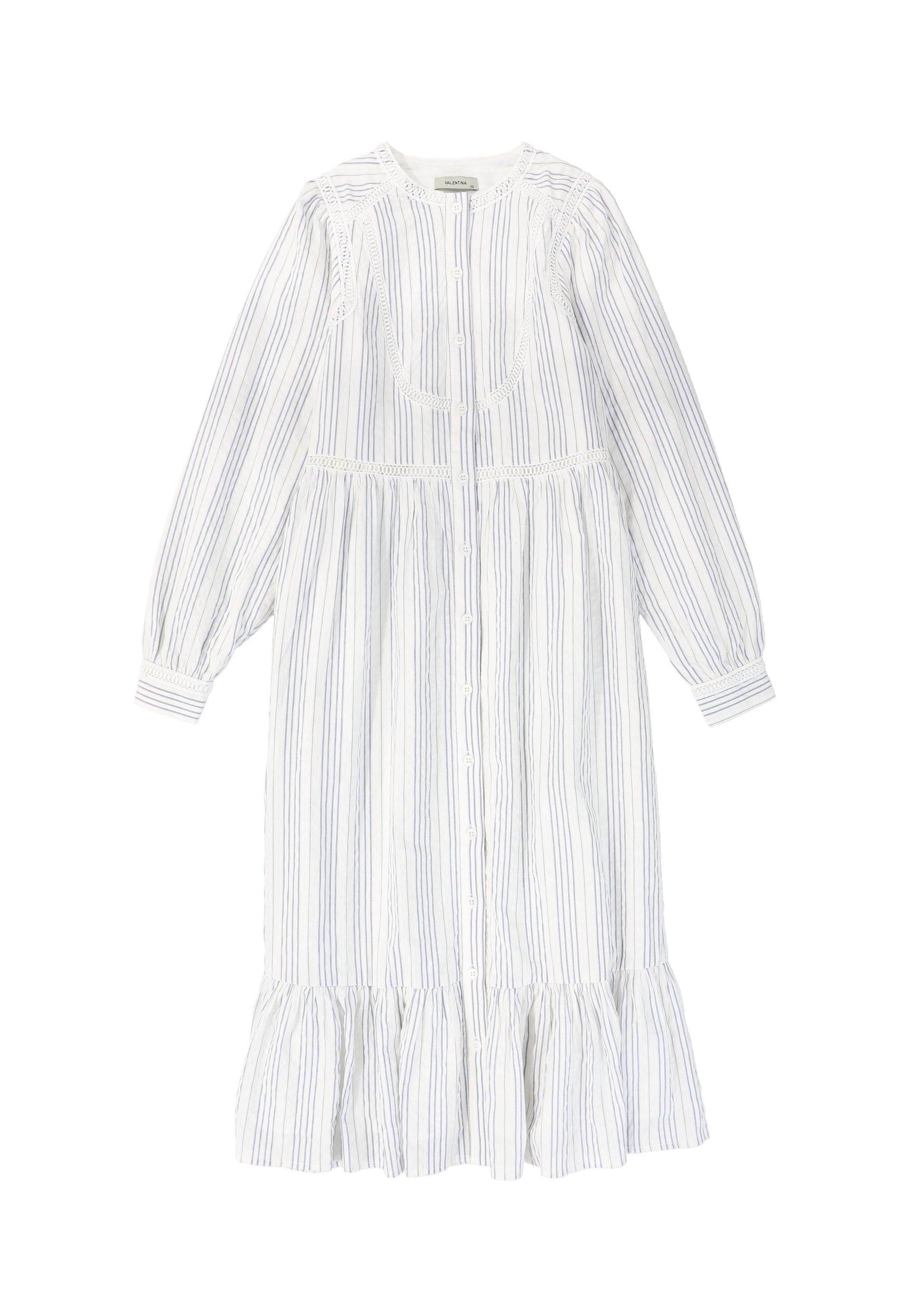 VALENTINA LIGHT BLUE STRIPED LACE TRIM DRESS