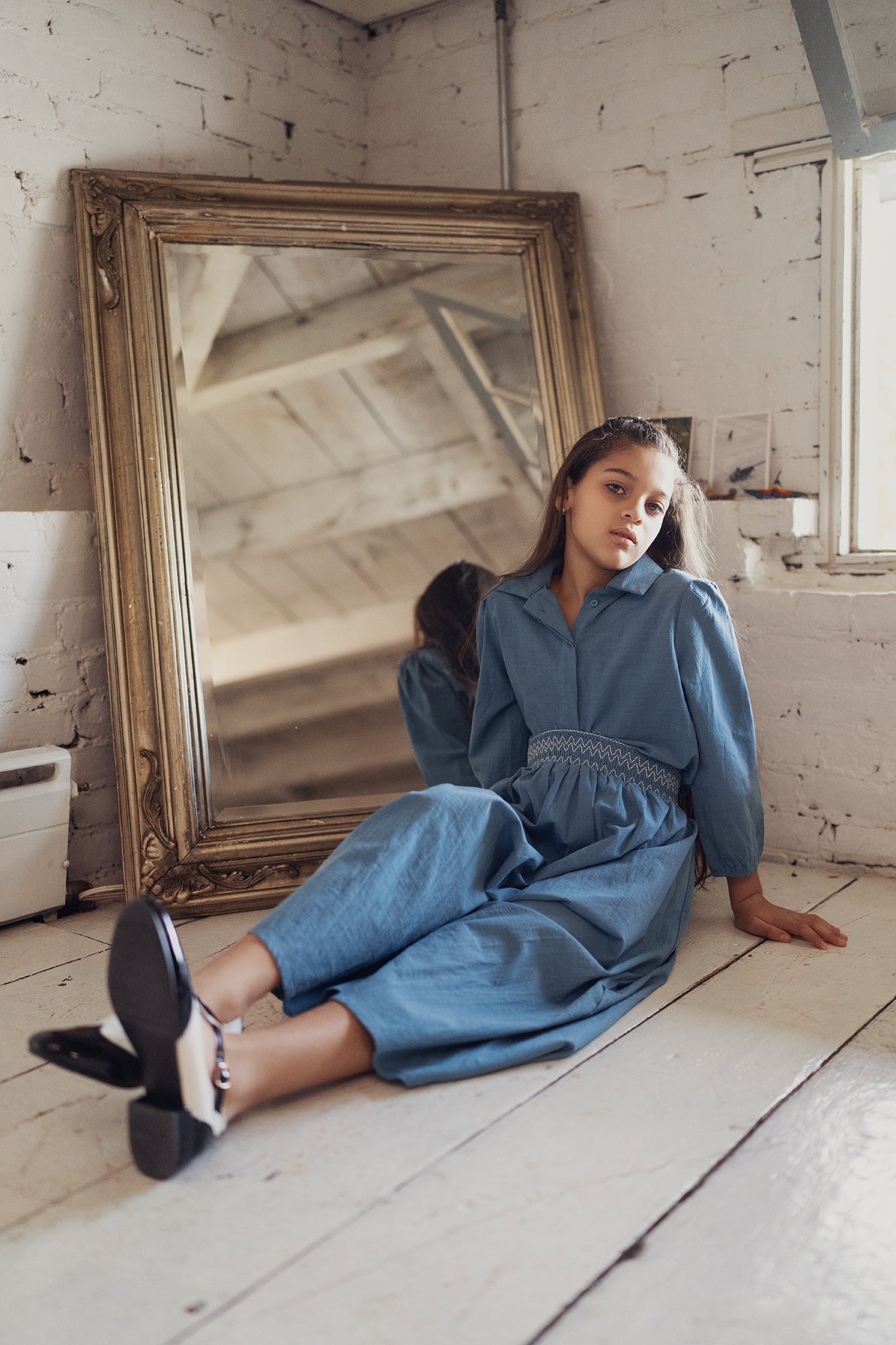 BACE COLLECTION BLUE SMOCKED COLLAR DRESS [FINAL SALE]