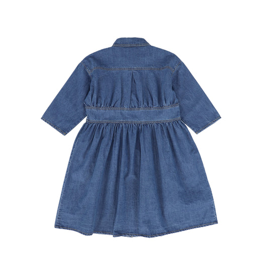 BAMBOO MID BLUE DENIM STICTHED SHIRT DRESS [FINAL SALE]