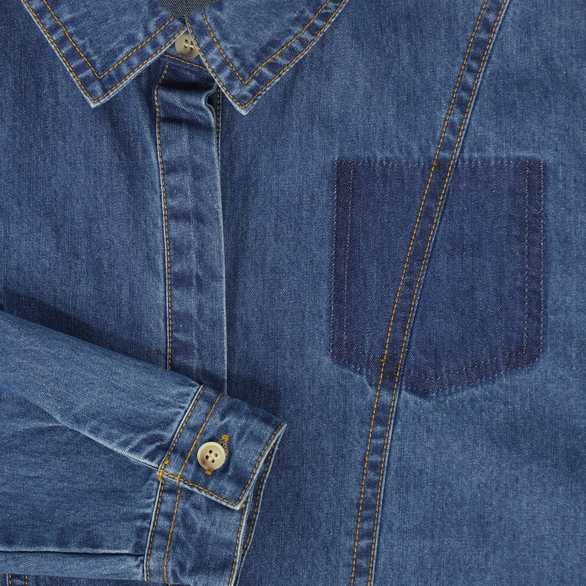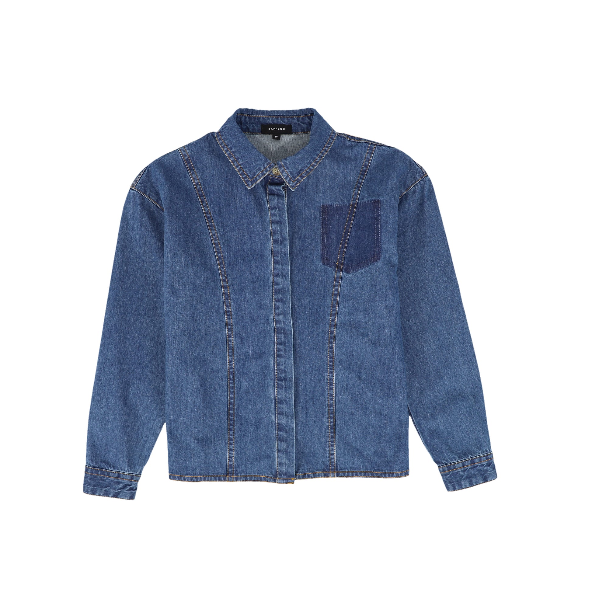 BAMBOO MID BLUE DENIM STITCHED SS SHIRT [FINAL SALE]