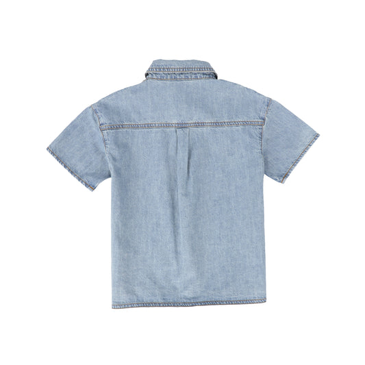 BAMBOO BLUE DENIM STITCHED SS SHIRT [FINAL SALE]
