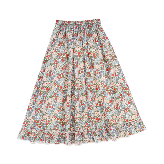 BAMBOO PASTEL FLORAL RUFFLE TRIM MIDI SKIRT [FINAL SALE]