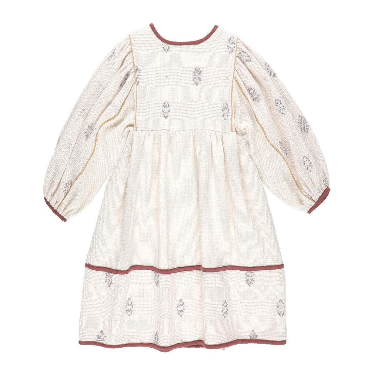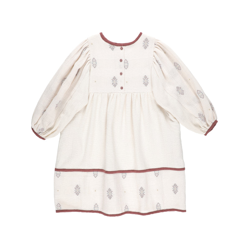 BELLE CHIARA CREAM BOX NECK EMBROIDERED DRESS
