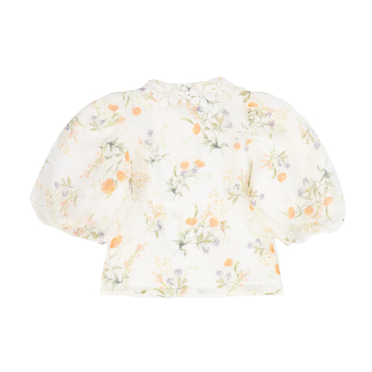 PETITE AMALIE WHITE FLORAL PUFF SLEEVE BLOUSE [FINAL SALE]