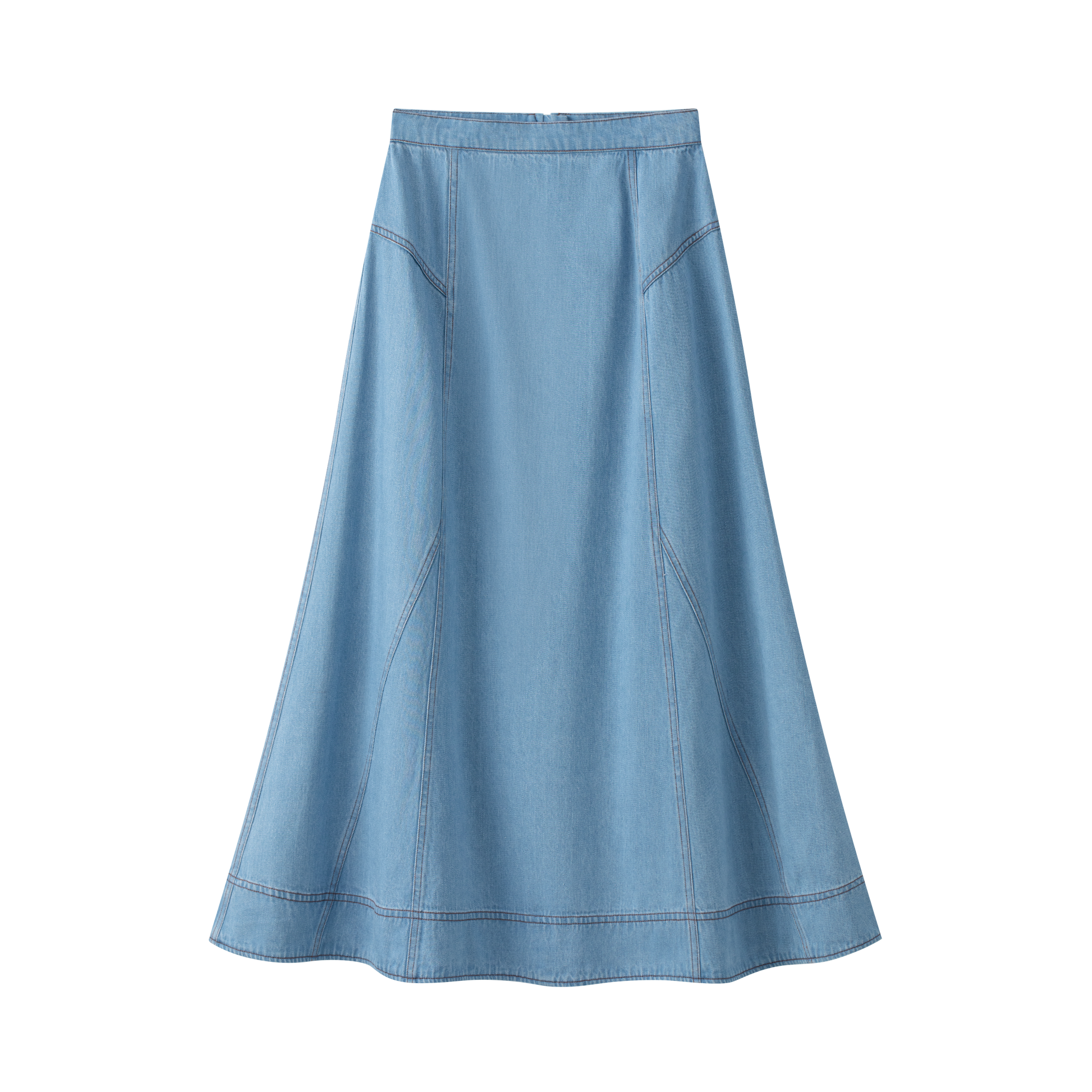 COCO BLANC BLUE DENIM STITCHED MIDI SKIRT