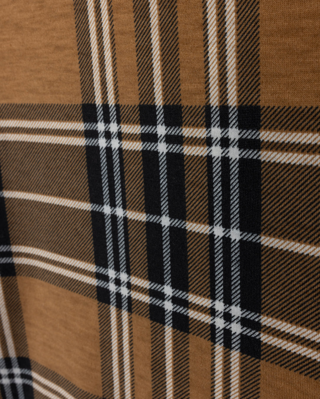 HELLO YELLOW CAMEL PLAID PRINT TURTLENECK