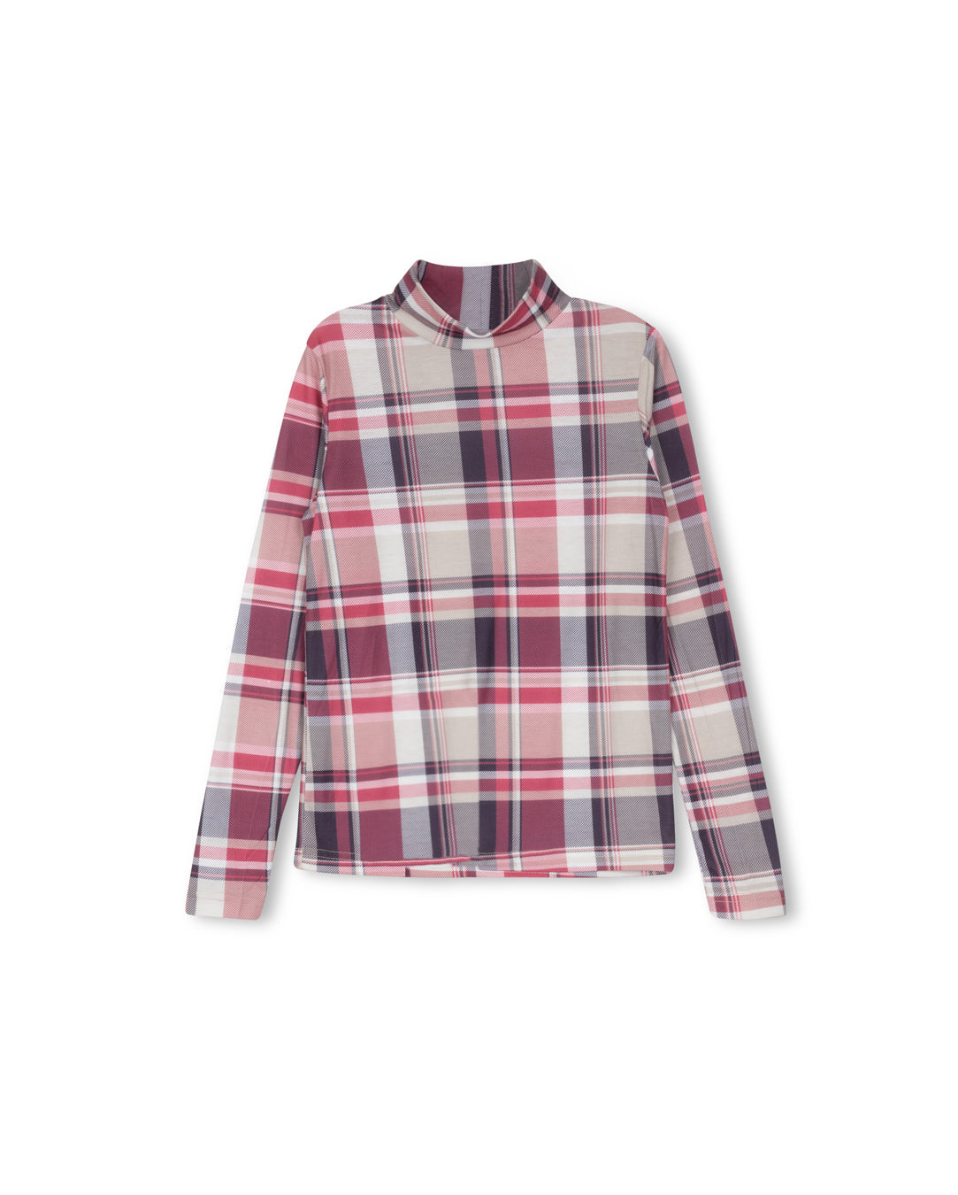 HELLO YELLOW PINK PLAID PRINT TURTLENECK