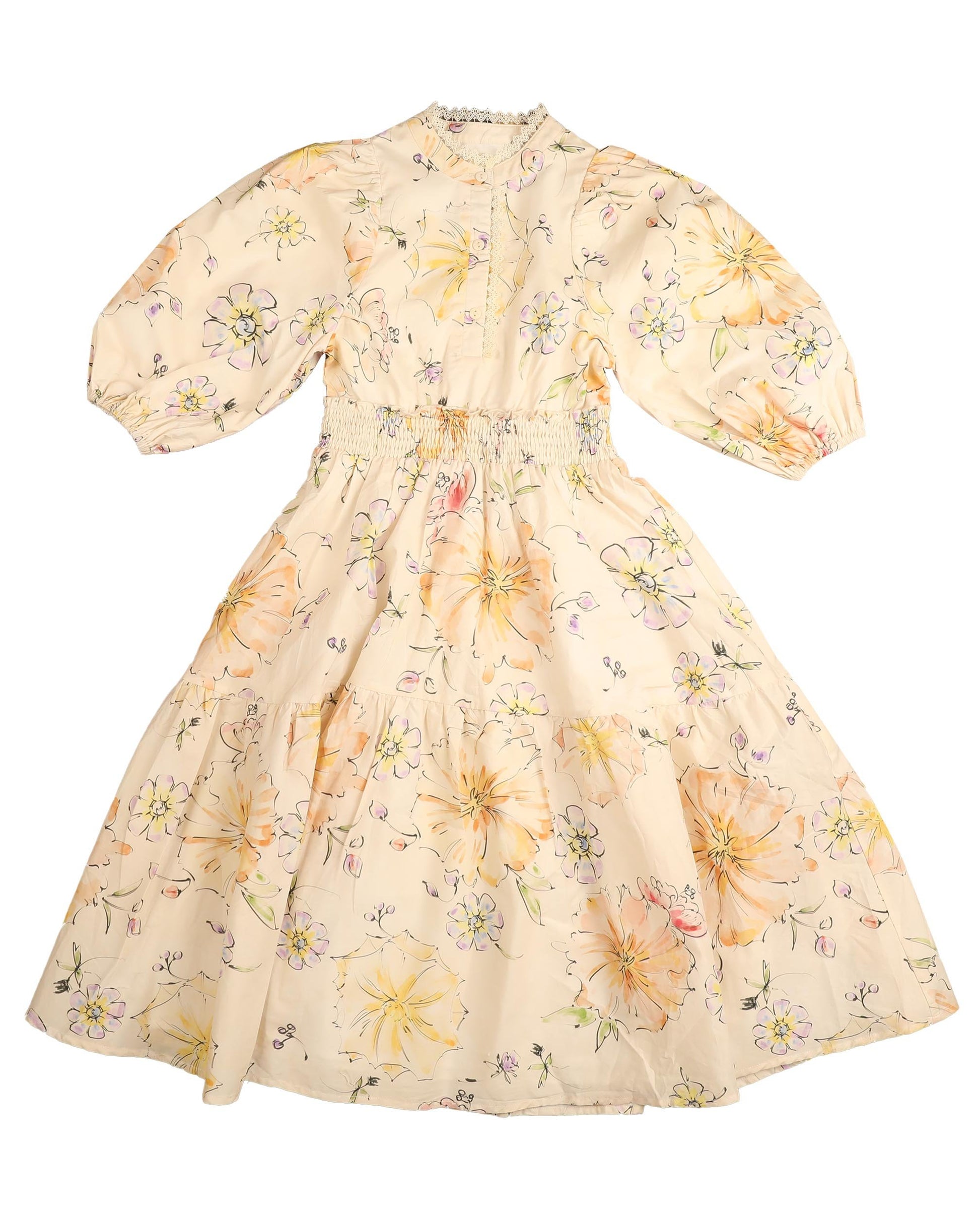 BELATI PEACH FLORAL WAISTED DRESS