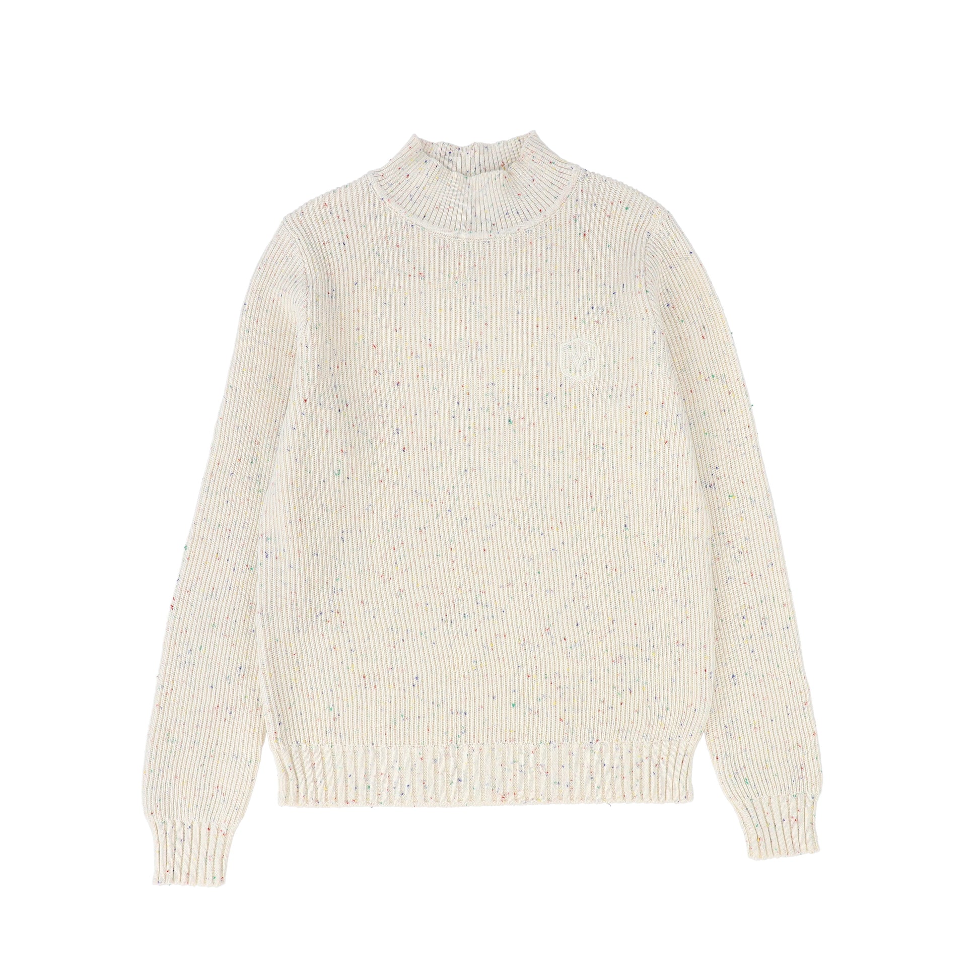VALENTINA IVORY MELANGE RIBBED MOCK NECK SWEATER