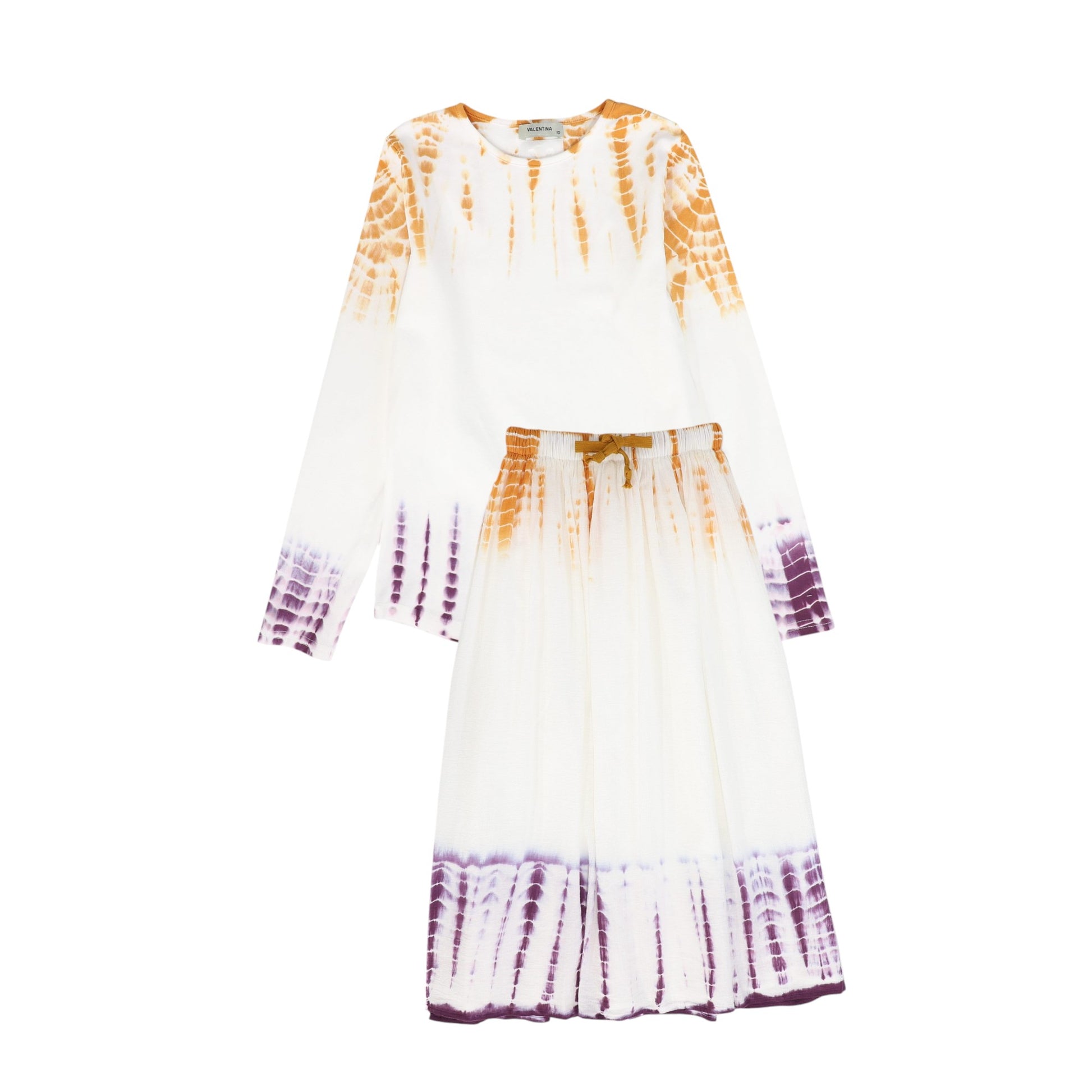 VALENTINA IVORY/PURPLE CRINKLE TIE DYE MAXI SKIRT [FINAL SALE]