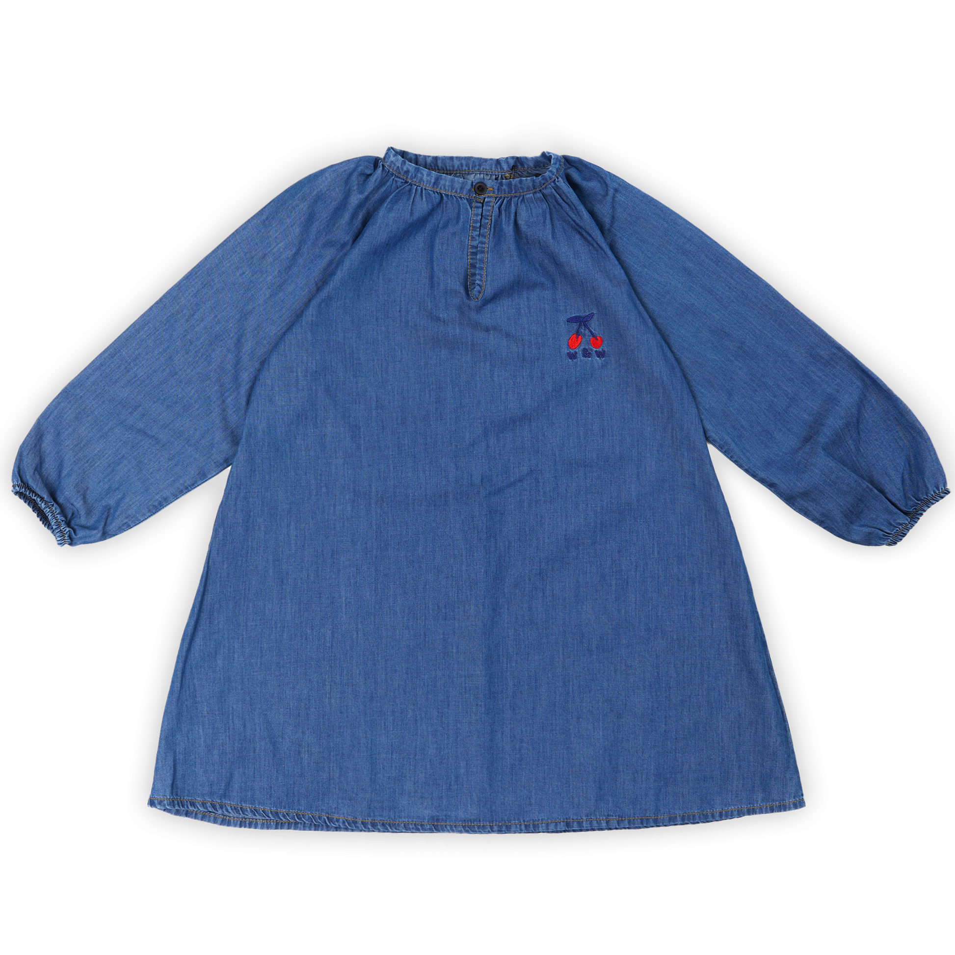 WANDER & WONDER DENIM EMBROIDERED CHERRY COLLAR BLOUSE