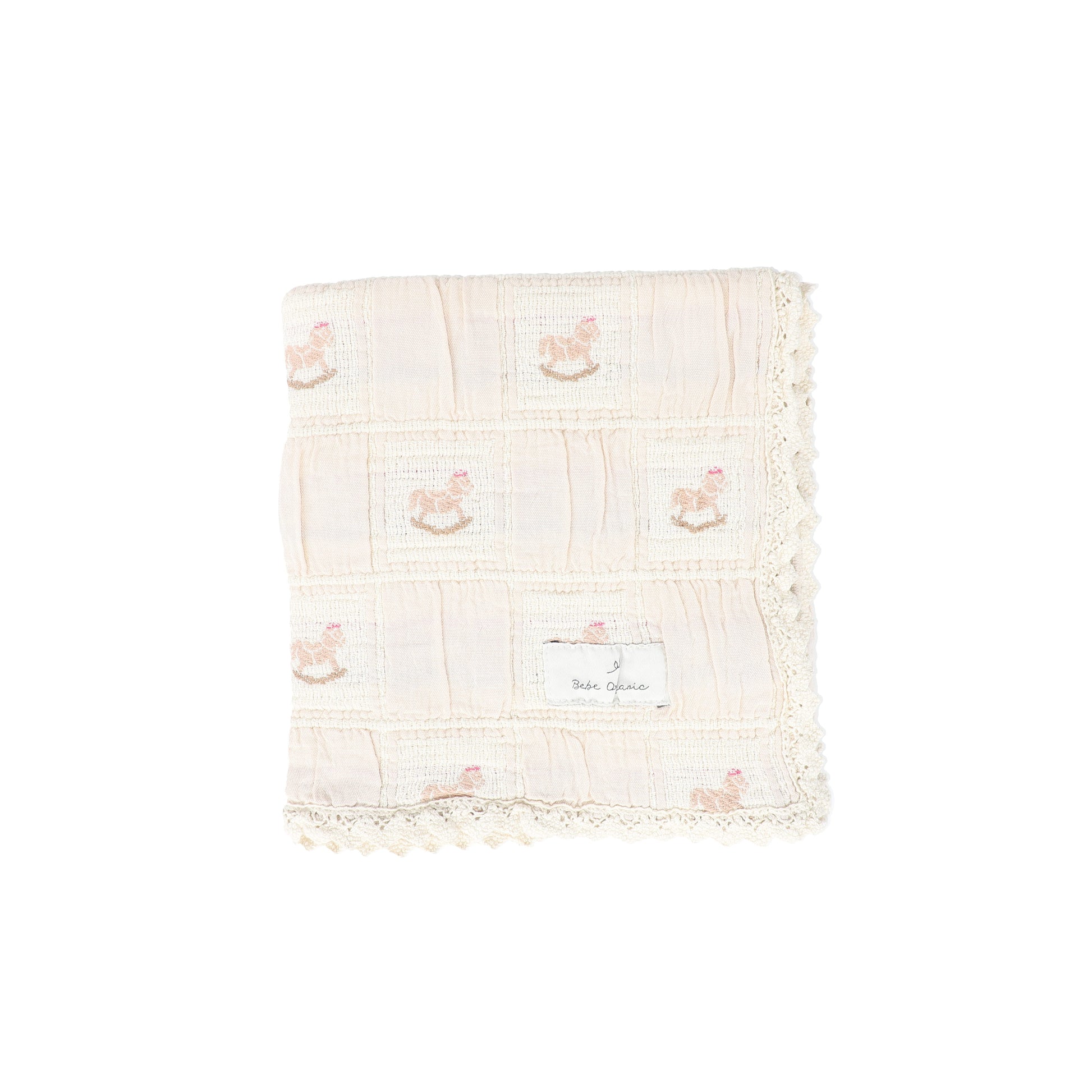 BEBE ORGANIC PINK ROCKING HORSE PATCHWORK BLANKET