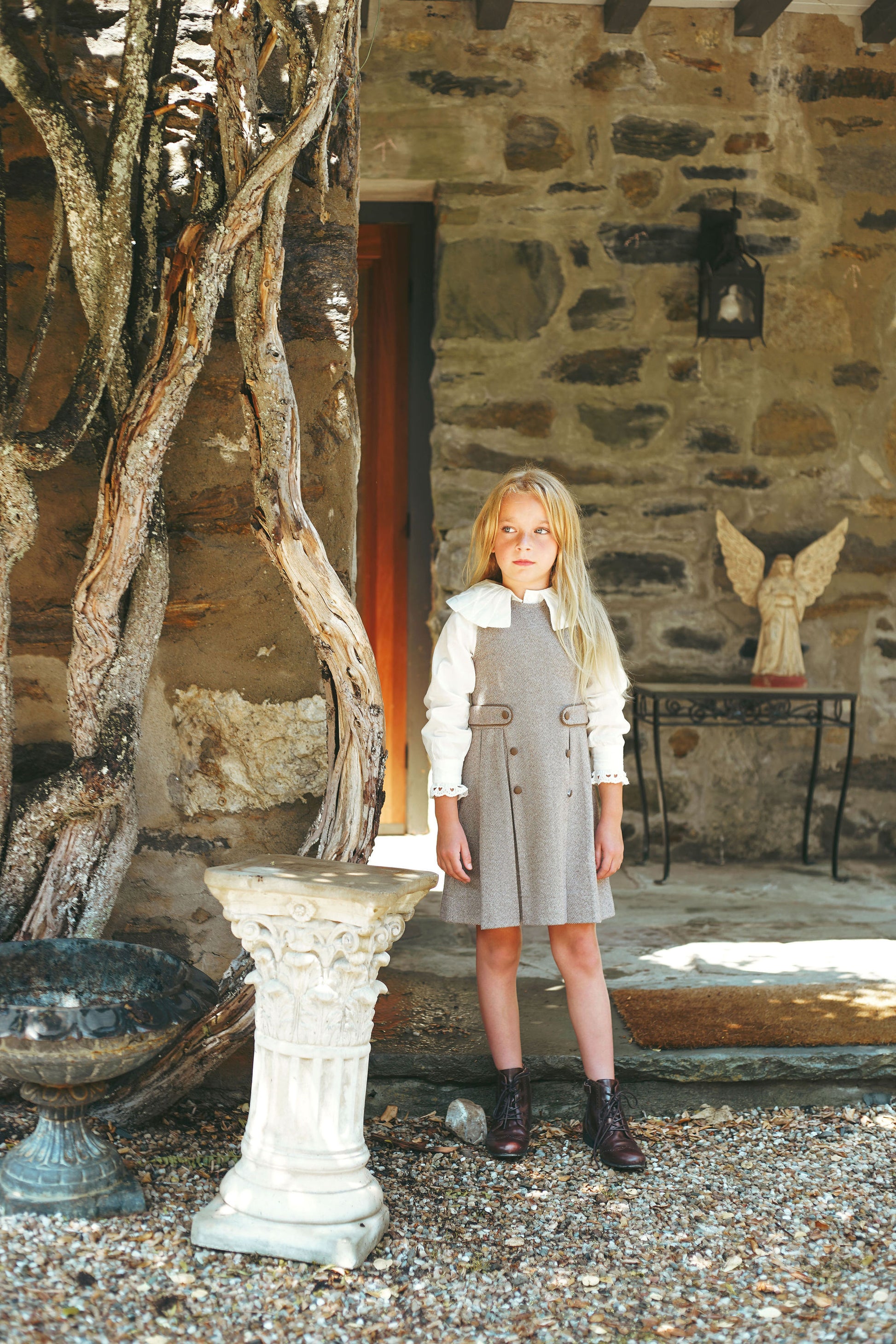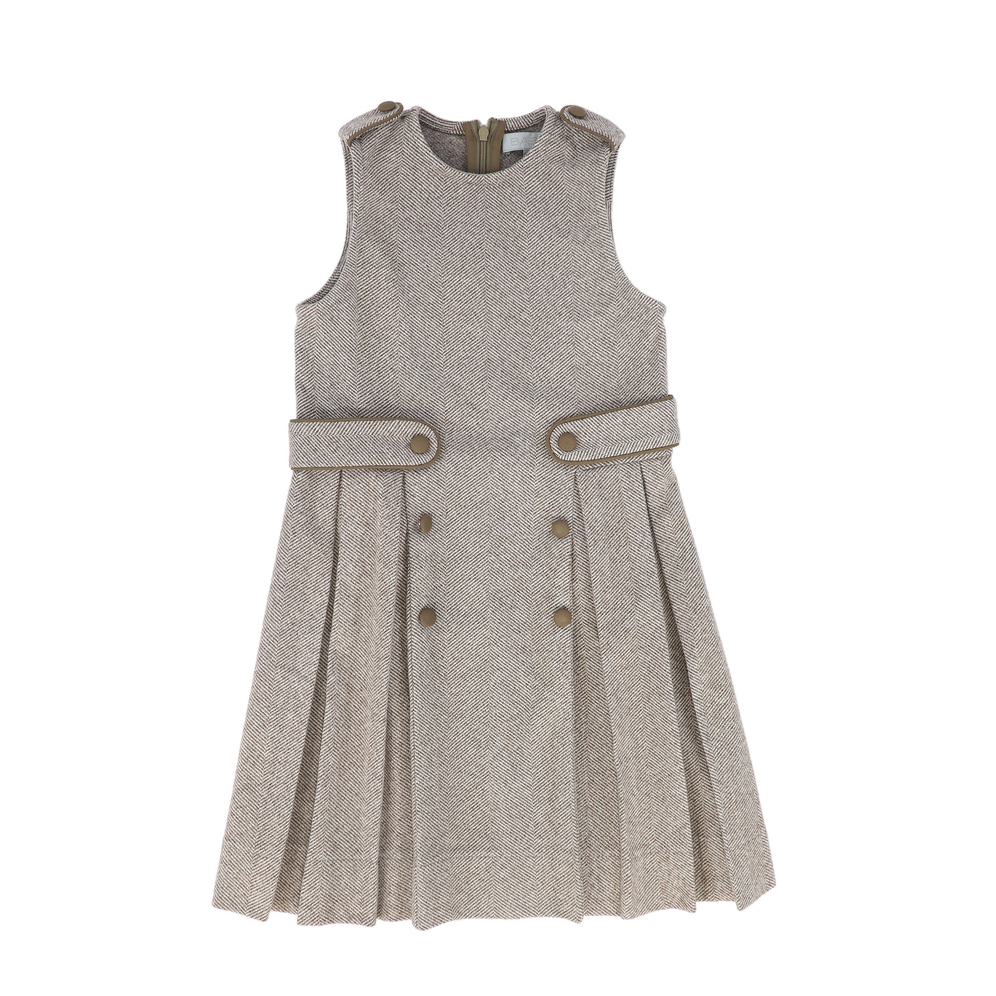 BACE COLLECTION BEIGE HERRINGBONE BUTTON DETAIL DRESS
