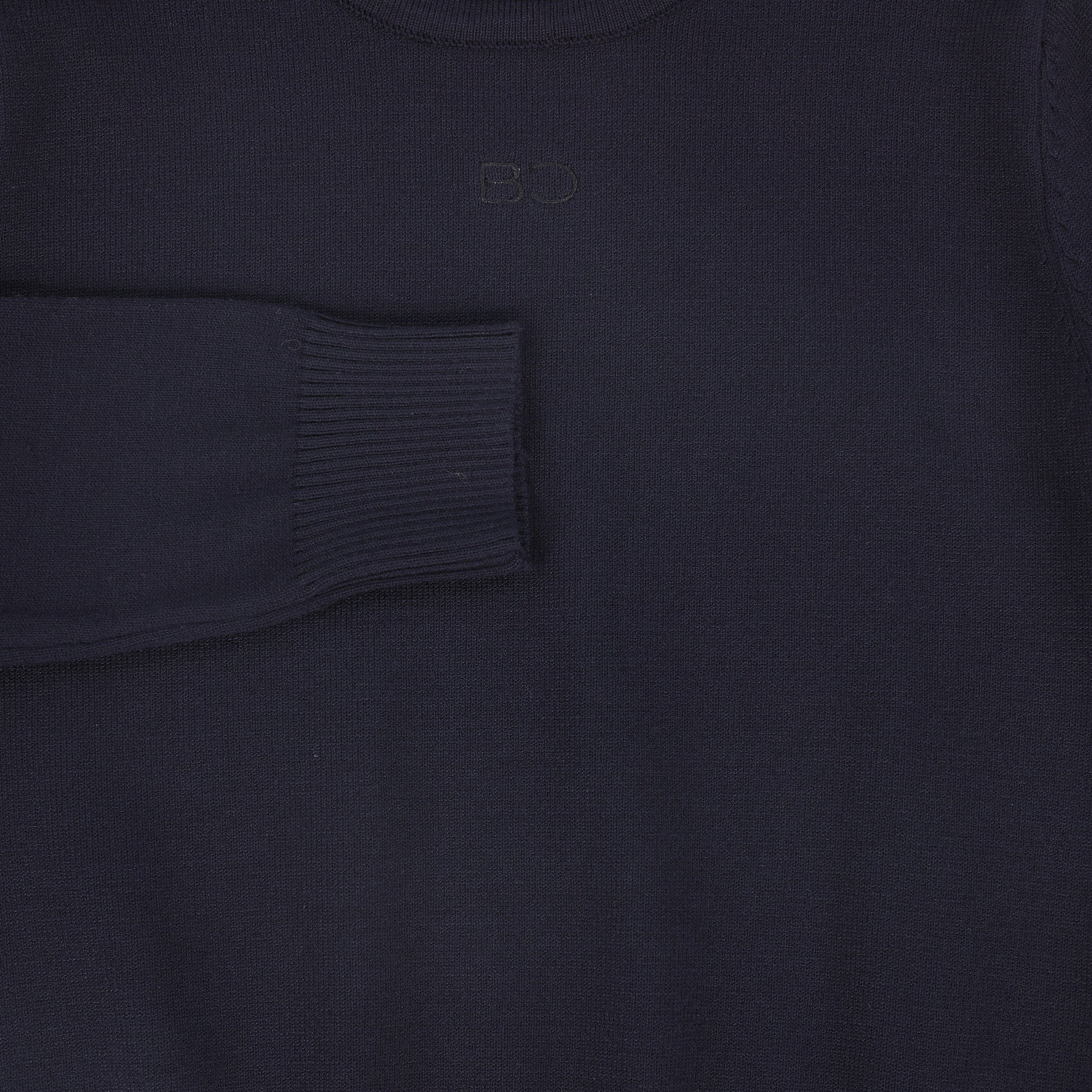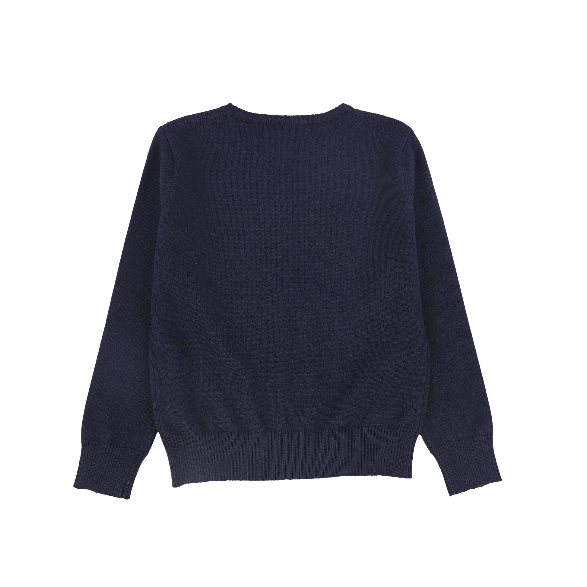 BACE COLLECTION NAVY LOGO EMBROIDERED CREWNECK SWEATER