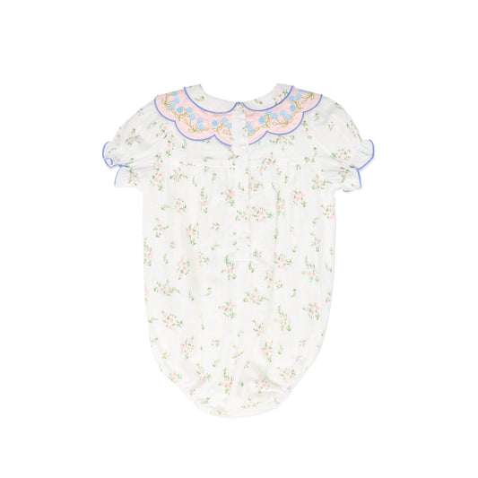 BAMBOO IVORY/GREEN FLORAL SCALLOP COLLAR ROMPER