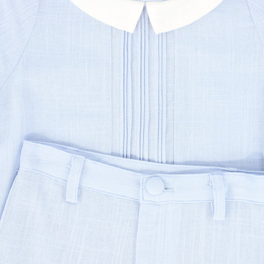 BAMBOO LIGHT BLUE LINEN LAYERED COLLAR ROMPER