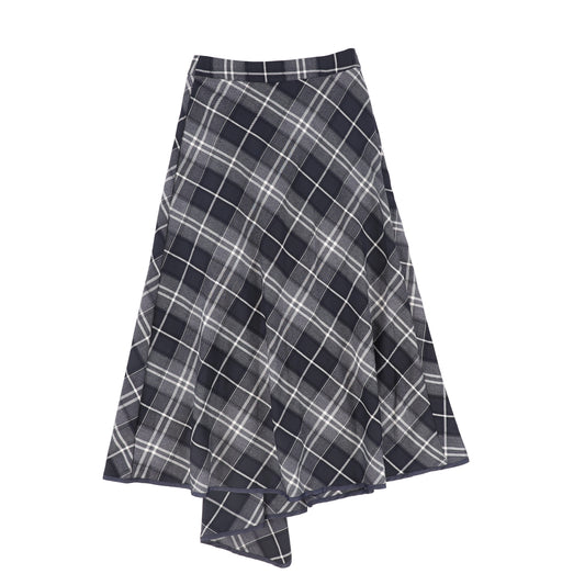 BAMBOO NAVY PLAID WRAP RUFFLE MAXI SKIRT