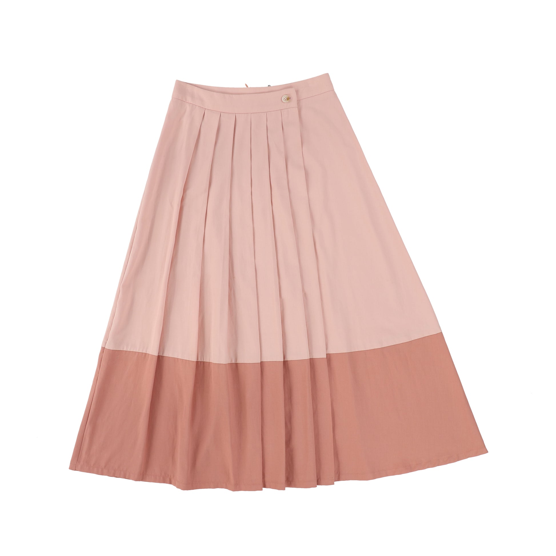 BAMBOO PINK PLEATED COLOR BLOCK WRAP SKIRT