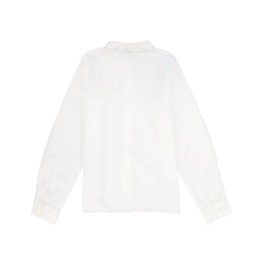 BAMBOO WHITE/BLUE STRIPE TRIM COLLAR BLOUSE (Size) 10
