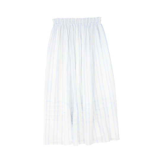 BAMBOO WHITE/BLUE LINEN STRIPED BELTED SKIRT (Size) 10