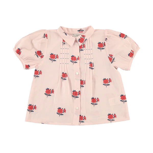 BEBE ORGANIC PINK FLORAL CLUSTER PUFF SLEEVE BLOUSE