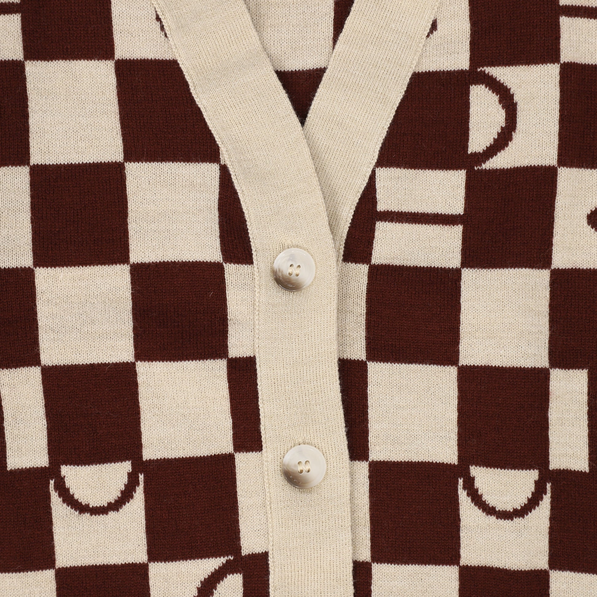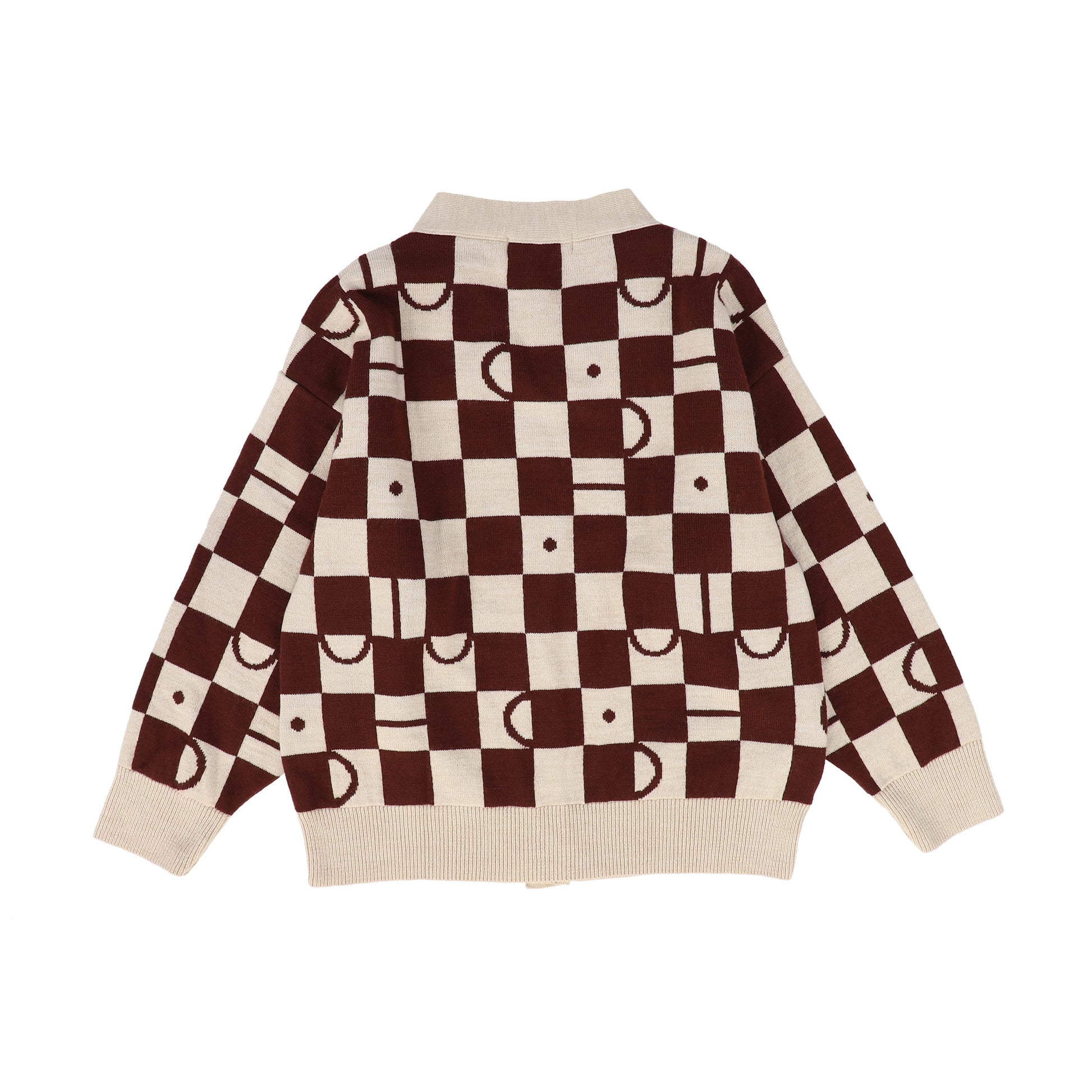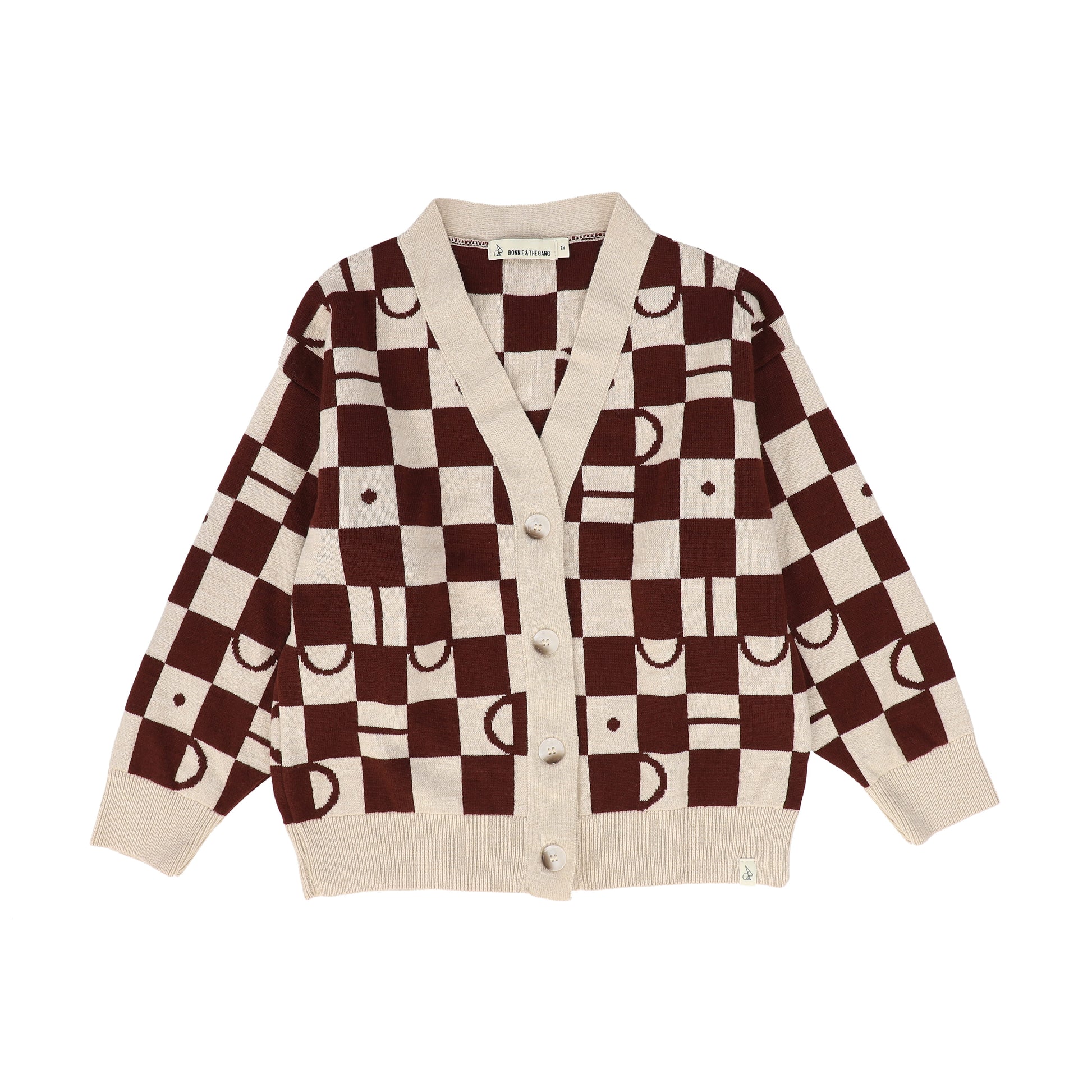 BONNIE AND THE GANG CHECKERED PLUM CARDIGAN
