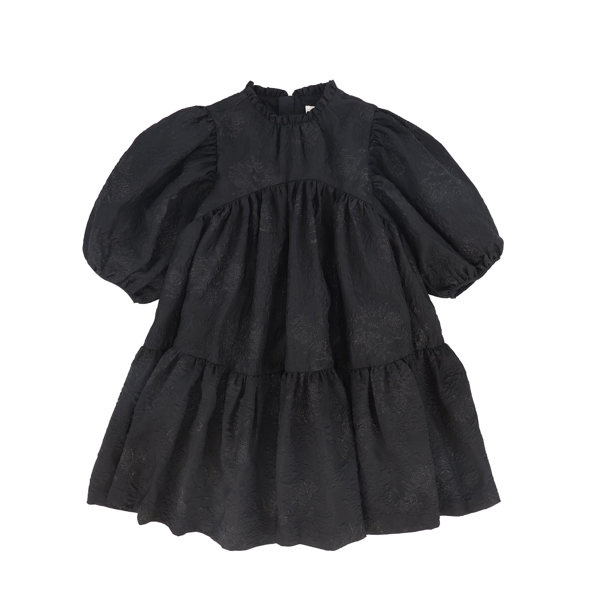 CERA UNA VOLTA BLACK PUFF SLEEVE TIERED DRESS