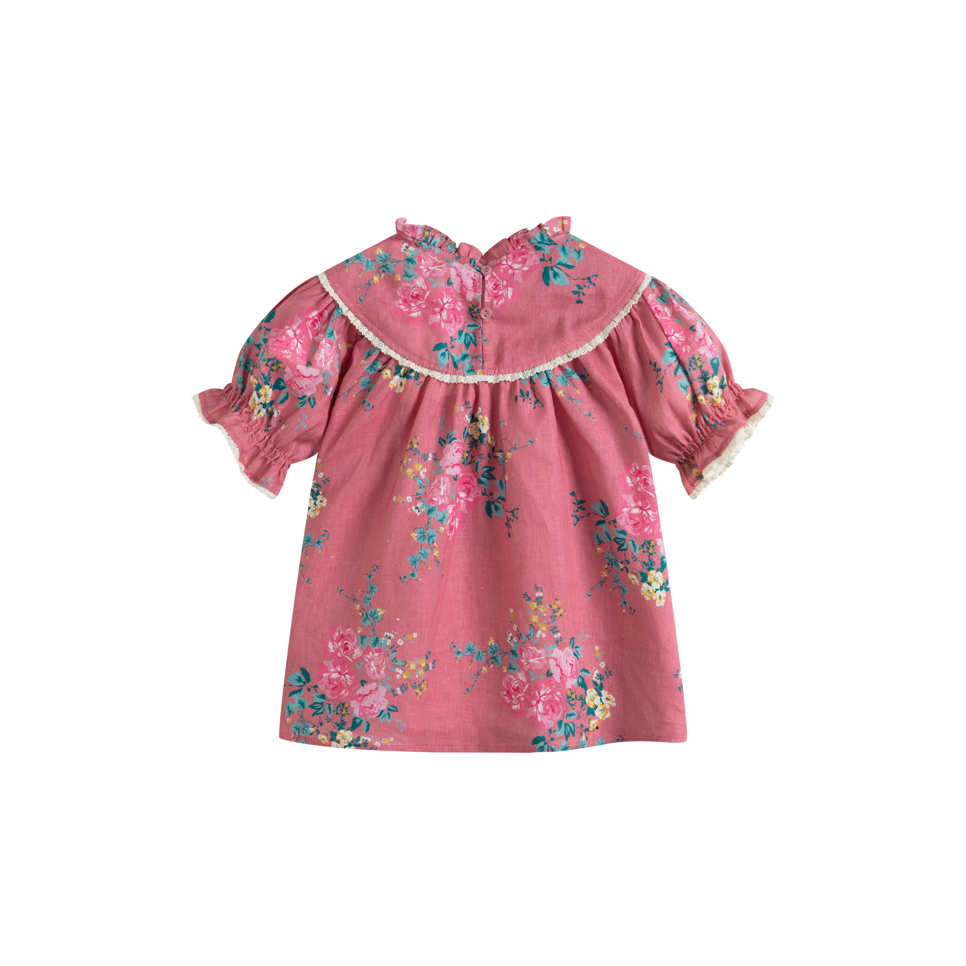 CERA UNA VOLTA DEEP PINK FLORAL LACE TRIM SHIRT