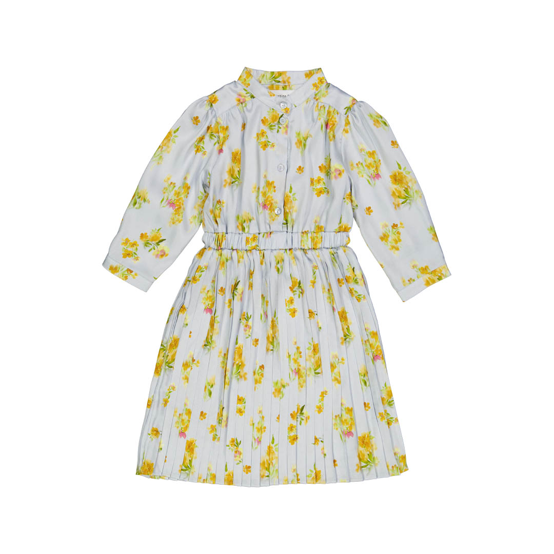 CHRISTINA ROHDE DUSTY BLUE/YELLOW FLORAL WAISTED DRESS