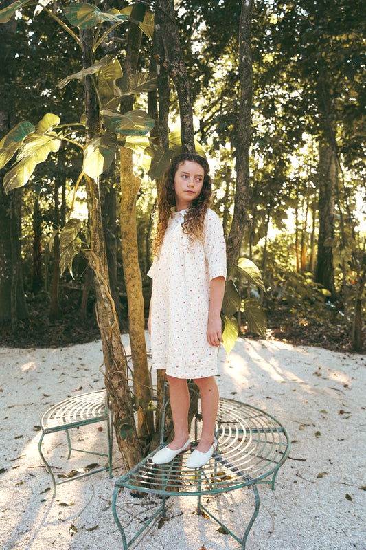 COCO BLANC IVORY GAUZE CHERRY PRINT COLLAR DRESS