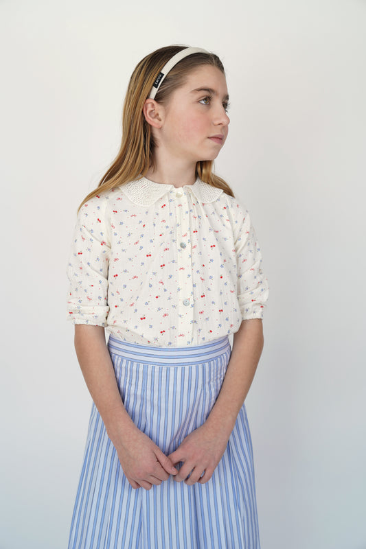 COCO BLANC IVORY GAUZE CHERRY PRINT BLOUSE