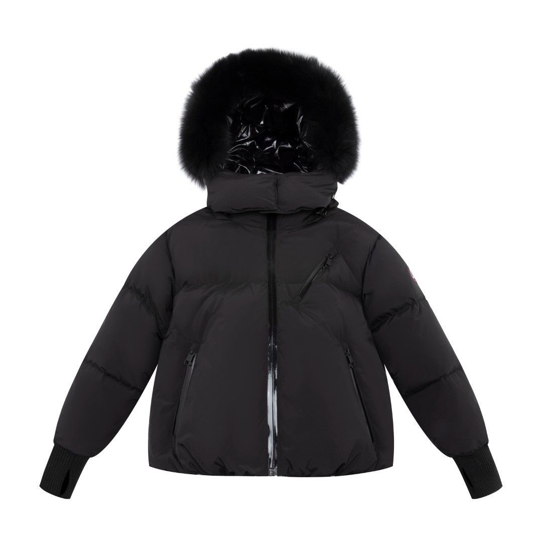 ELLABEE BLACK/BLACK FUR TRIM PUFFER COAT