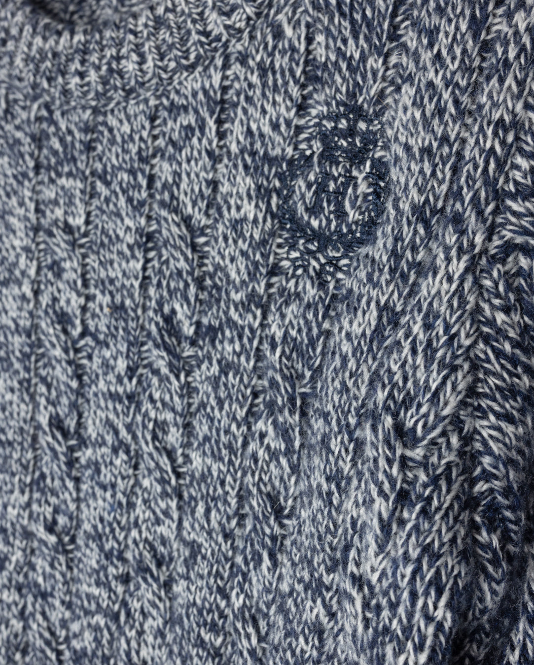 HARPER JAMES NAVY MARLED CABLE KNIT SWEATER