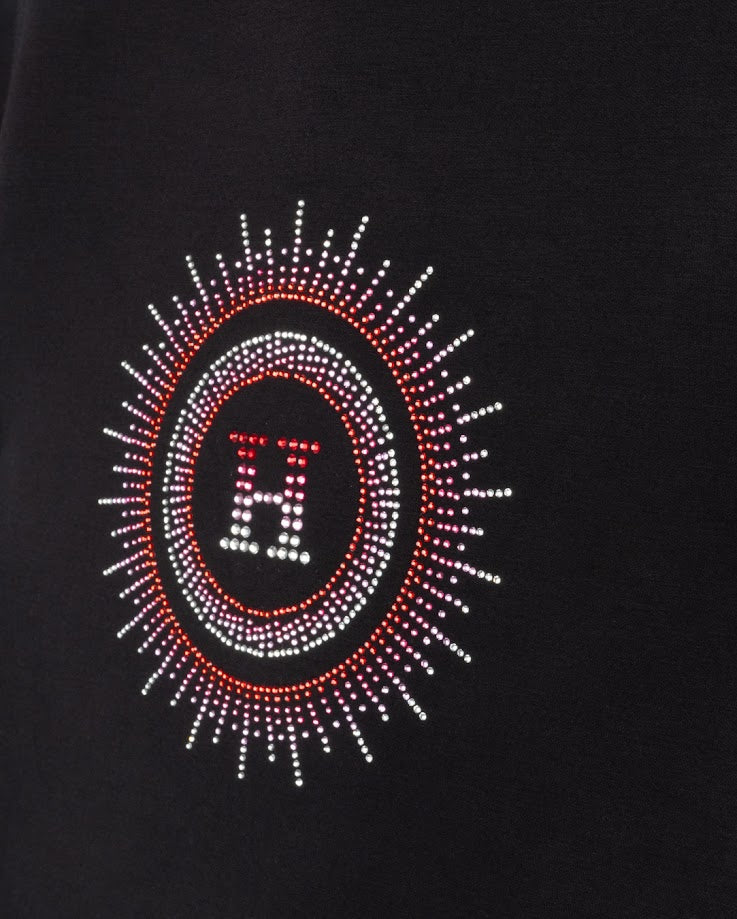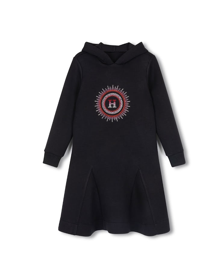 HELLO YELLOW BLACK RHINESTONE EMBELLISHED SCUBA DRESS