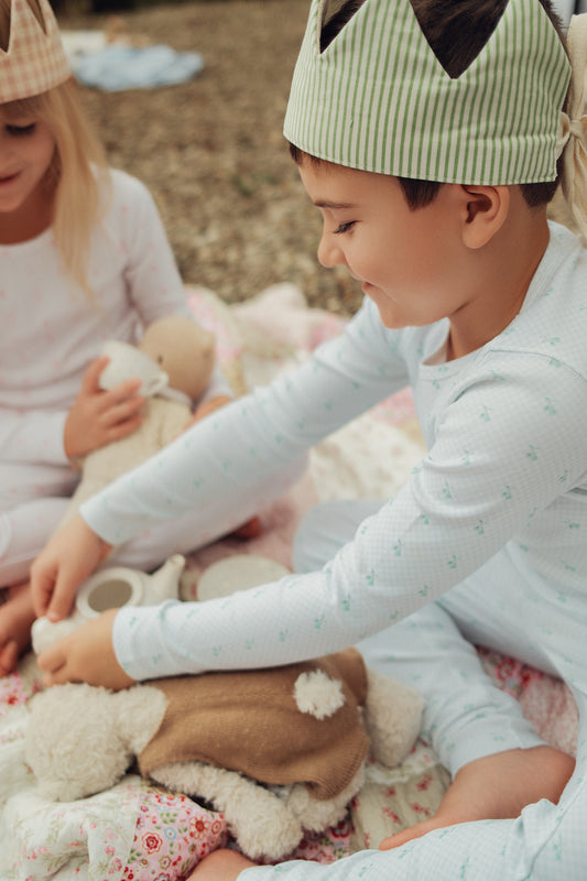 LAMOUR LOU MINT CHECKED CHERRY FOOTIE + BEANIE