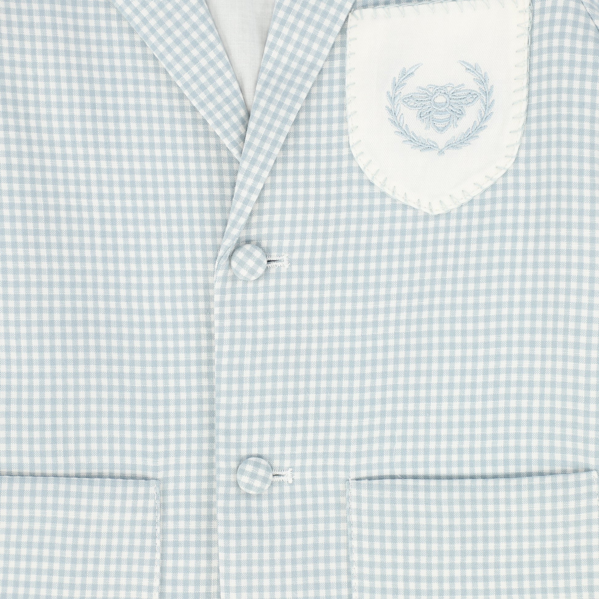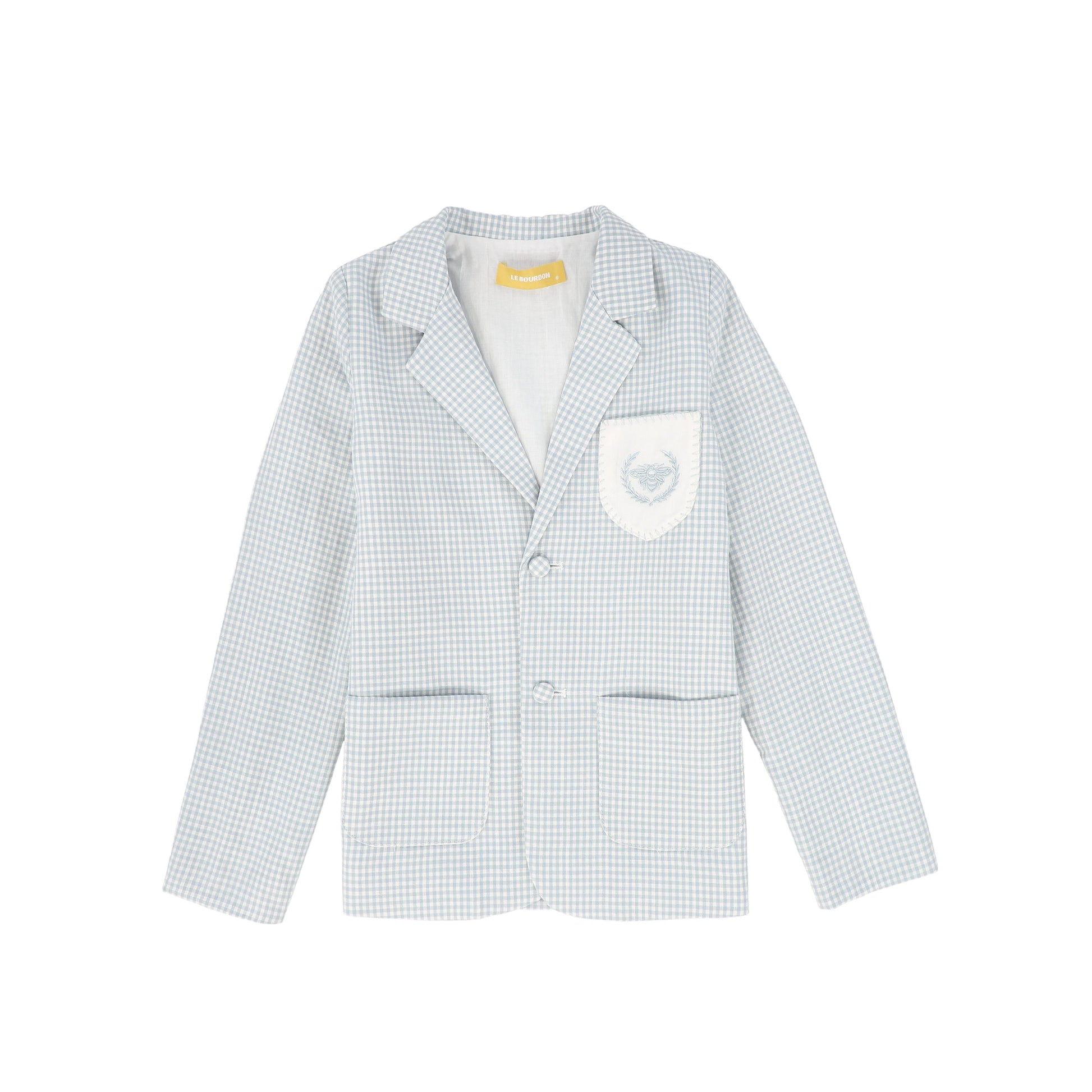 LE BOURDON BLUE LINEN EMBLEM POCKET BLAZER