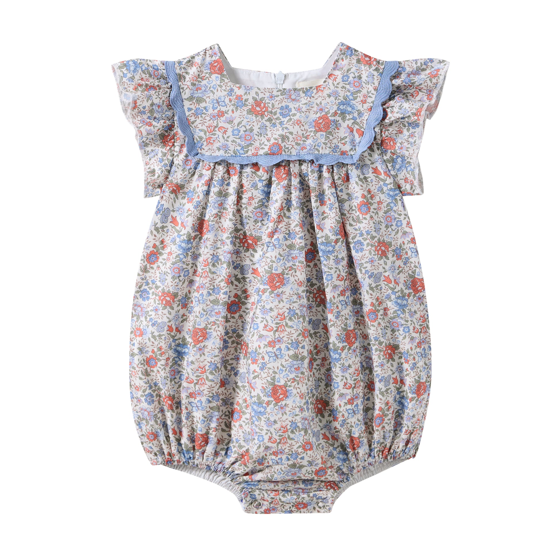 LIMONANA LIGHT BLUE/RED FLORAL ROMPER