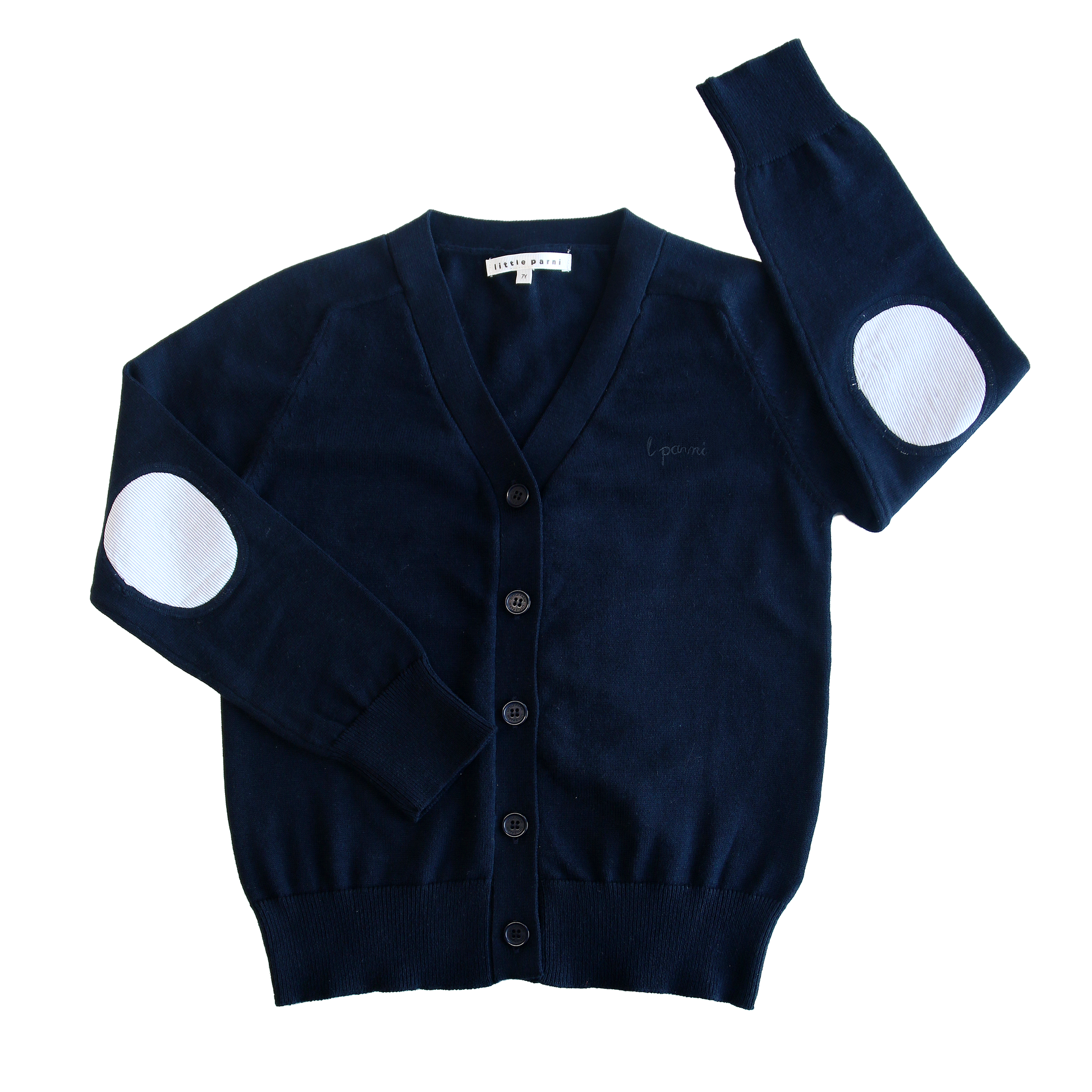 LITTLE PARNI NAVY ELBOW PATCH CARDIGAN