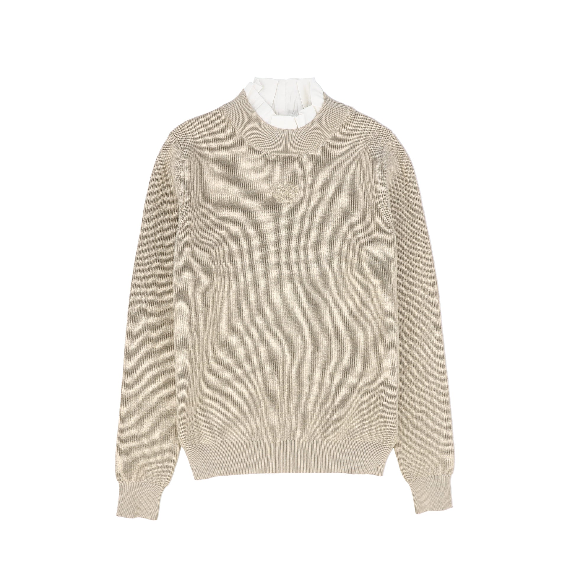 MALLORY AND MERLOT BEIGE RUFFLE KNIT MOCKNECK