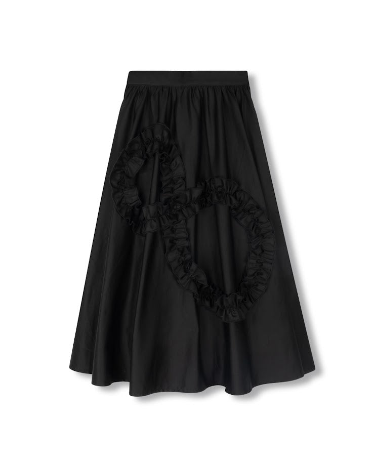 MALLORY AND MERLOT BLACK RUFFLE TRIM MIDI SKIRT