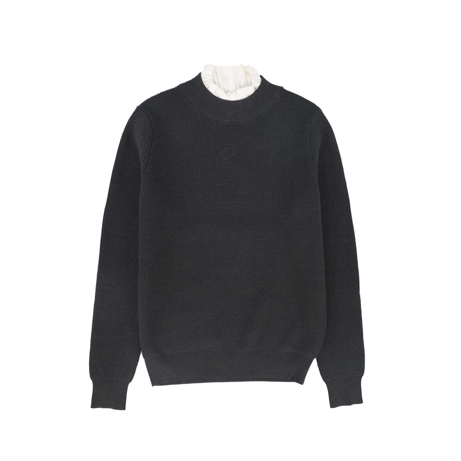 MALLORY AND MERLOT CHARCOAL RUFFLE KNIT MOCKNECK
