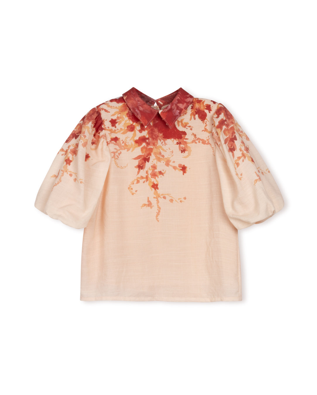 MALLORY AND MERLOT PEACH/RED FADED BLOUSE