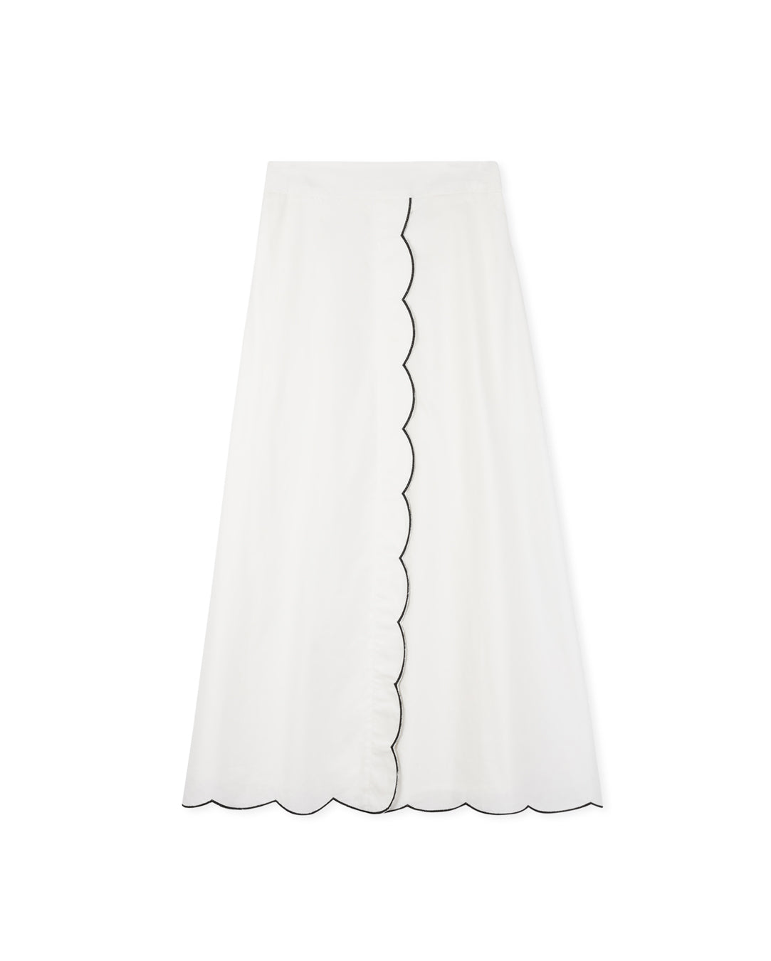 MALLORY AND MERLOT WHITE POPLIN SCALLOPED TRIM FLARE SKIRT