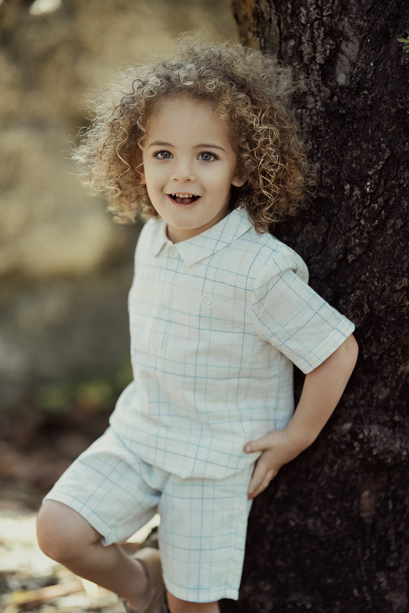 MANN IVORY/MULTI COLOR PLAID COLLAR SHIRT SET