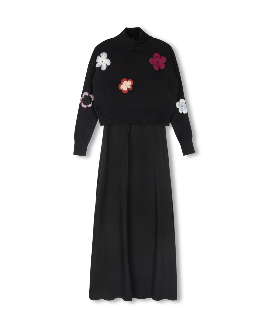 MINIMAL BLACK FLOWER APPLIQUE SLIP DRESS SET