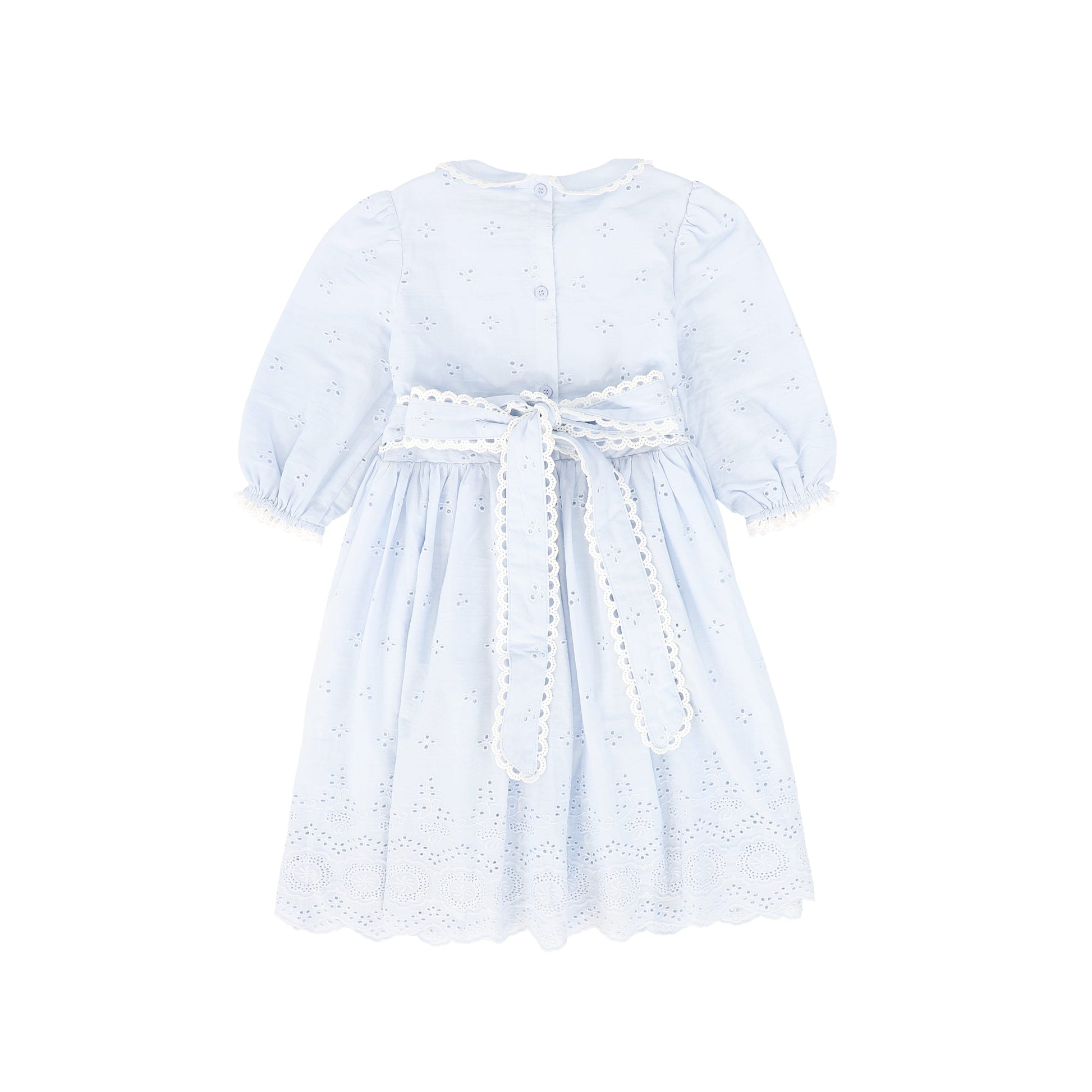 ONE CHILD LIGHT BLUE EYELET LACE TRIM DRESS